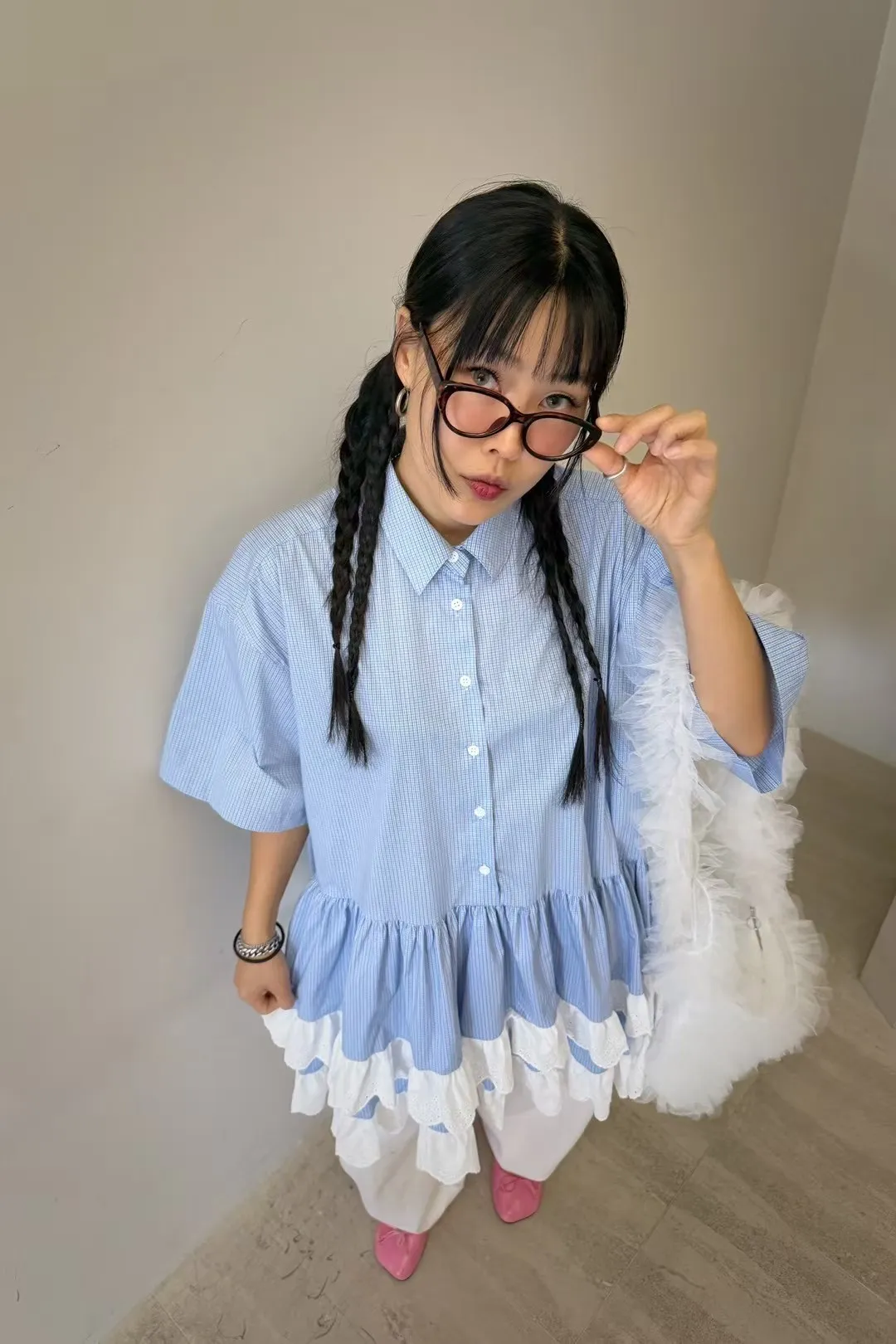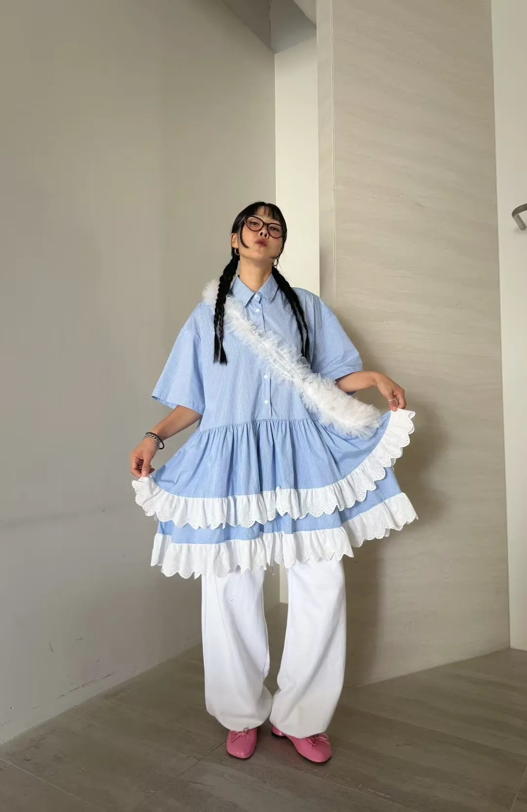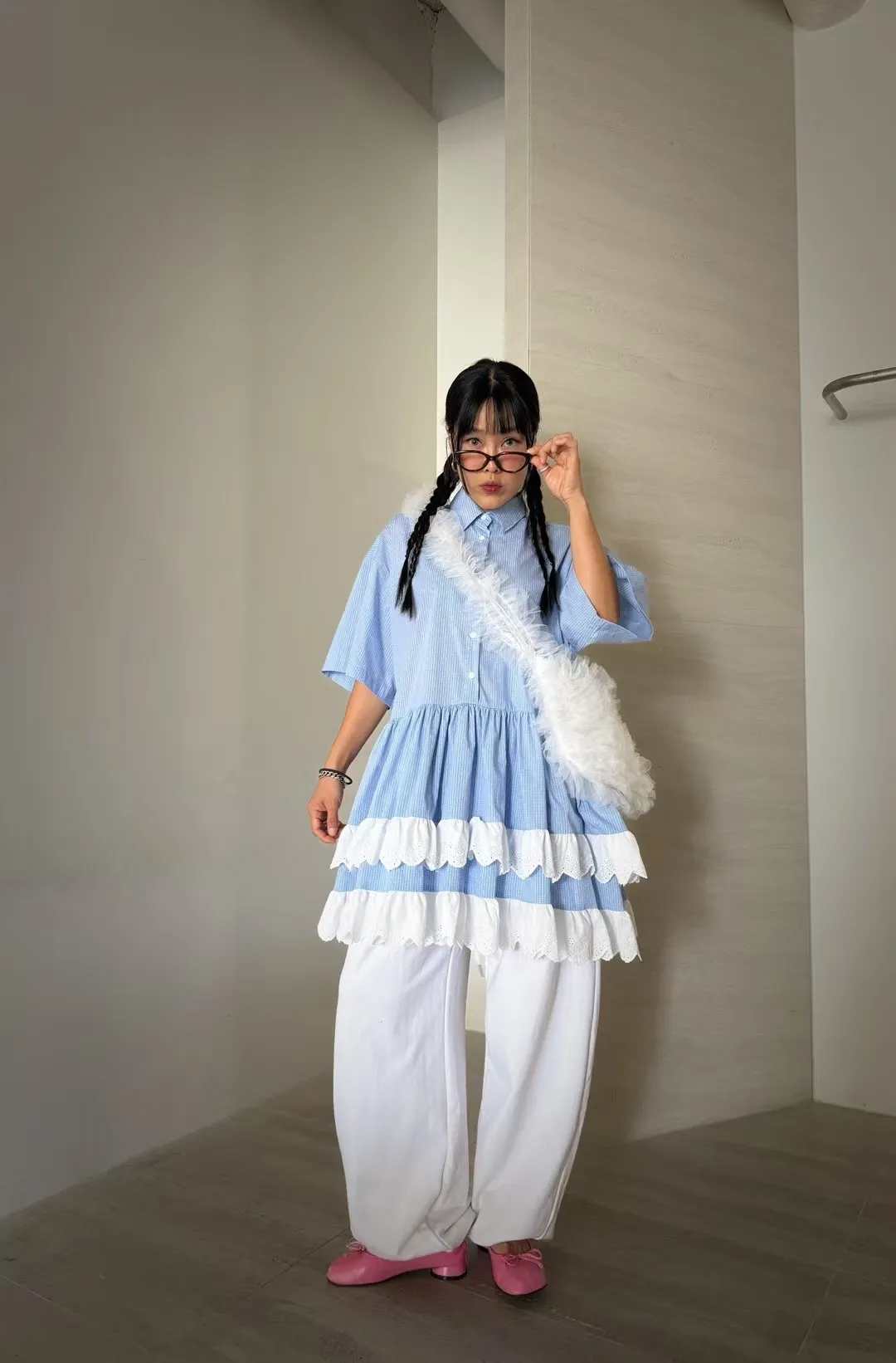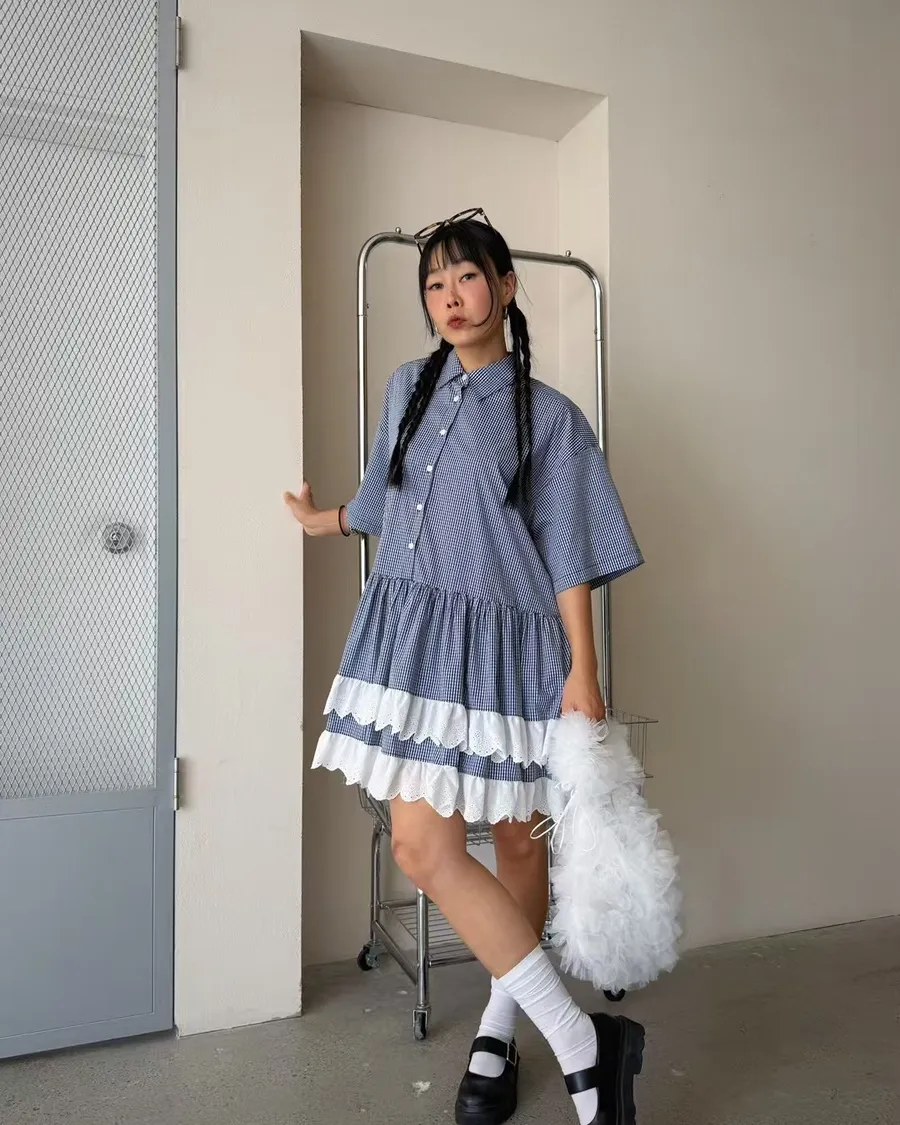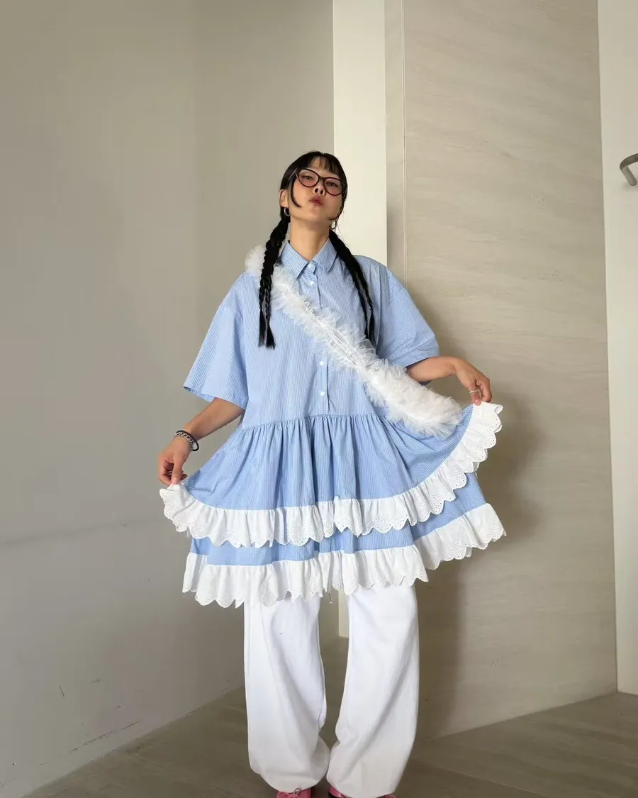 亦可搭個褲子疊穿層次或單穿領子搭個大領片或室配個長襪