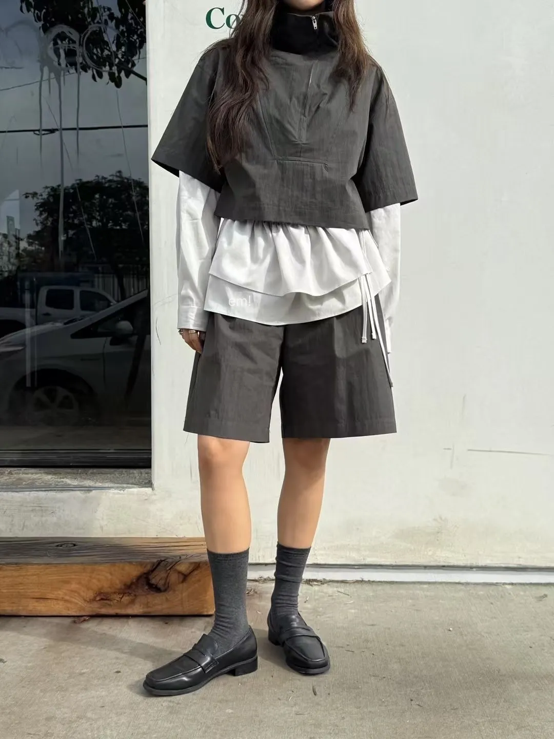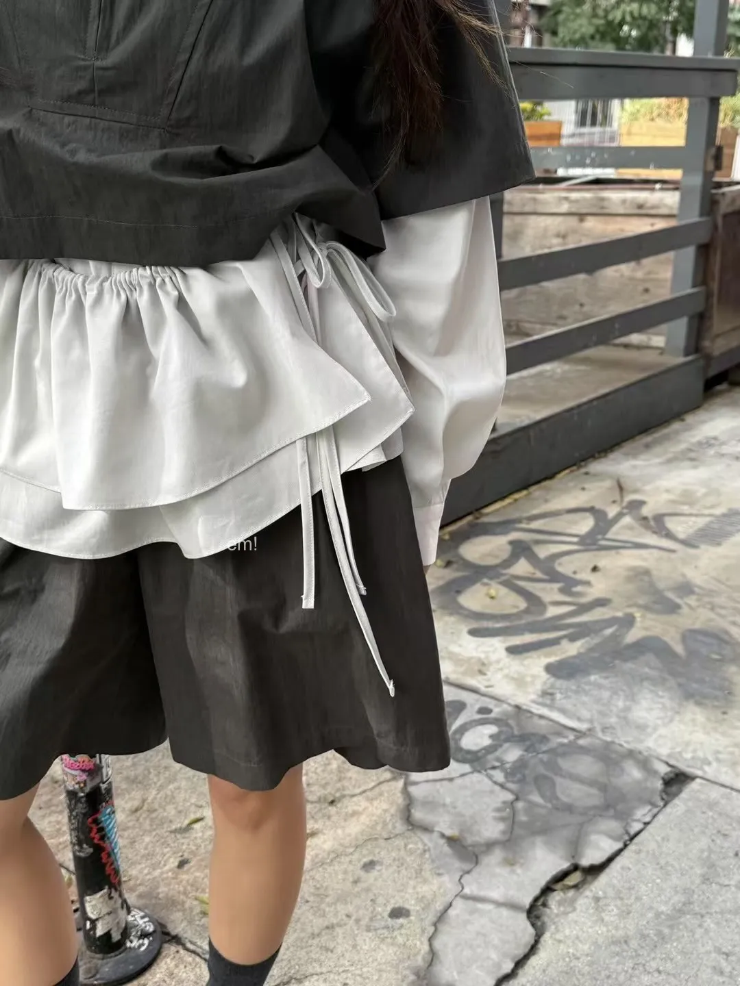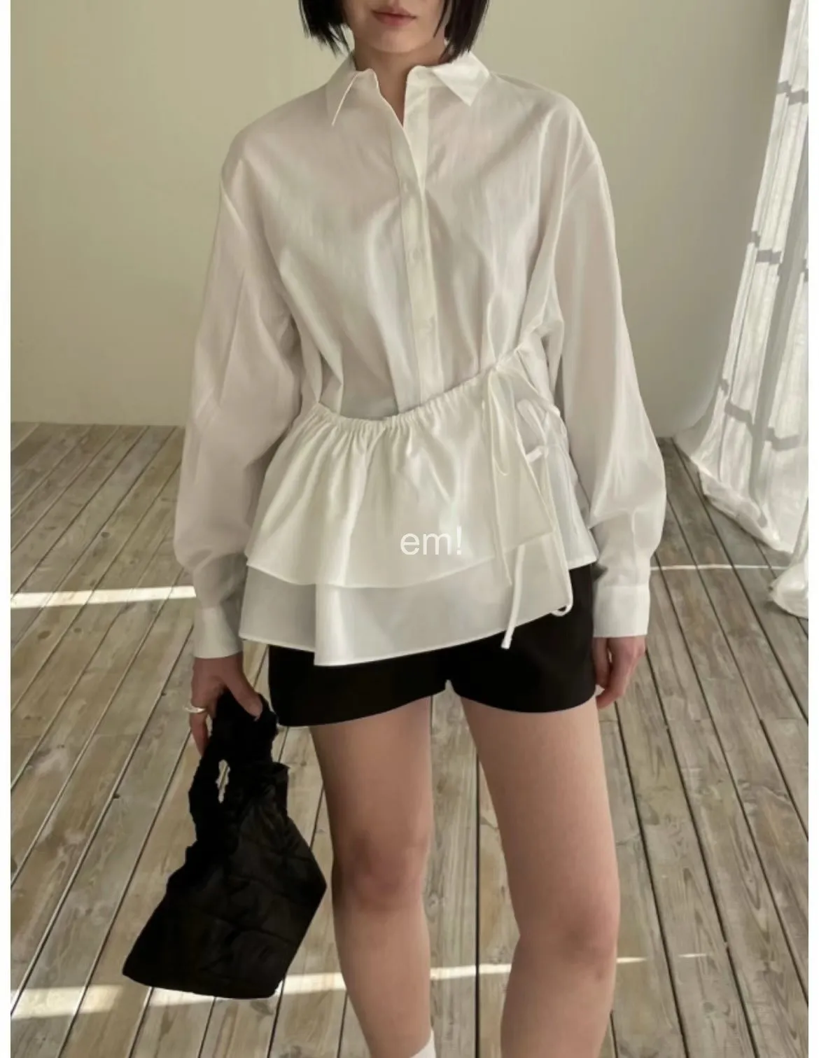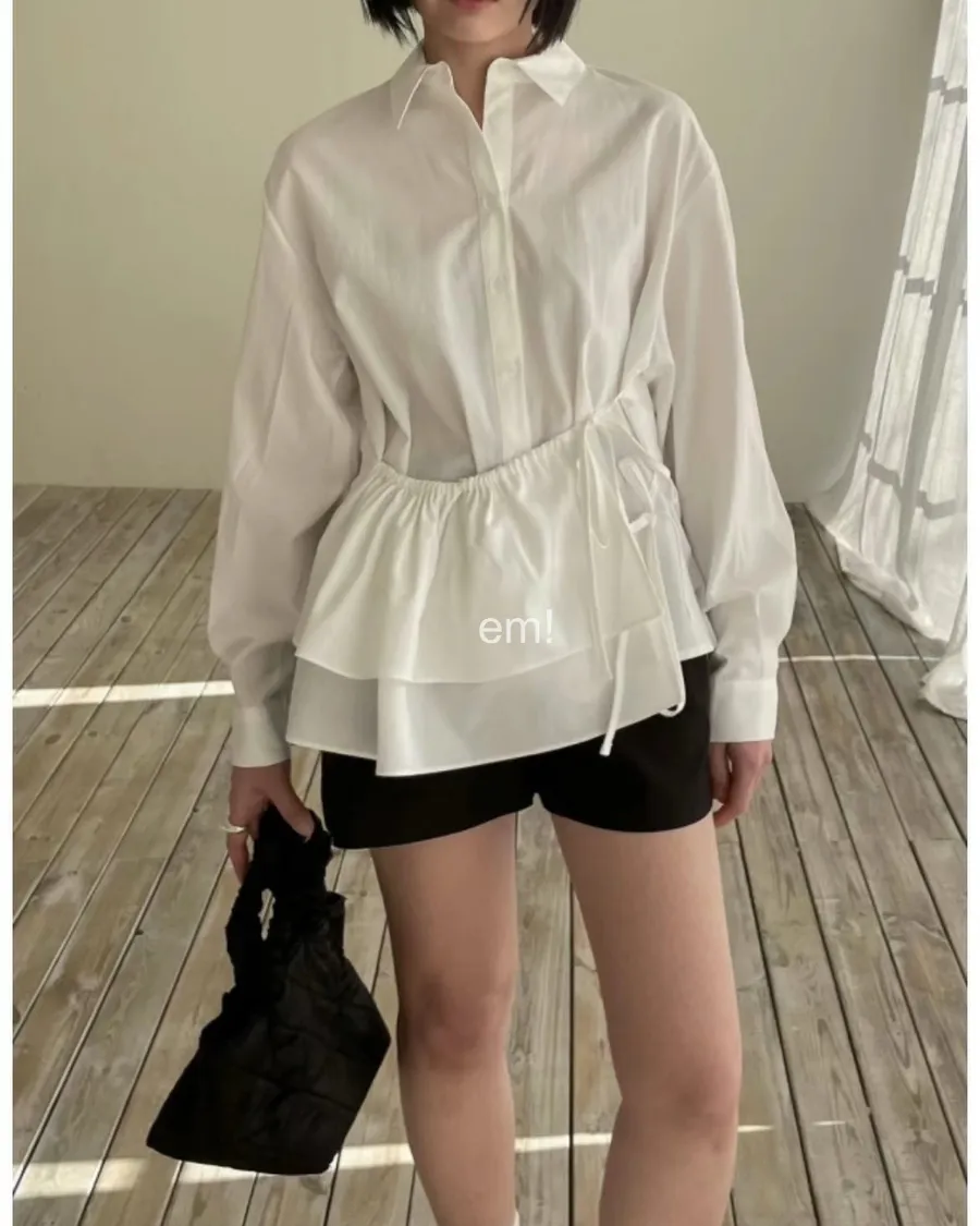 抽繩荷葉綁帶襯衫