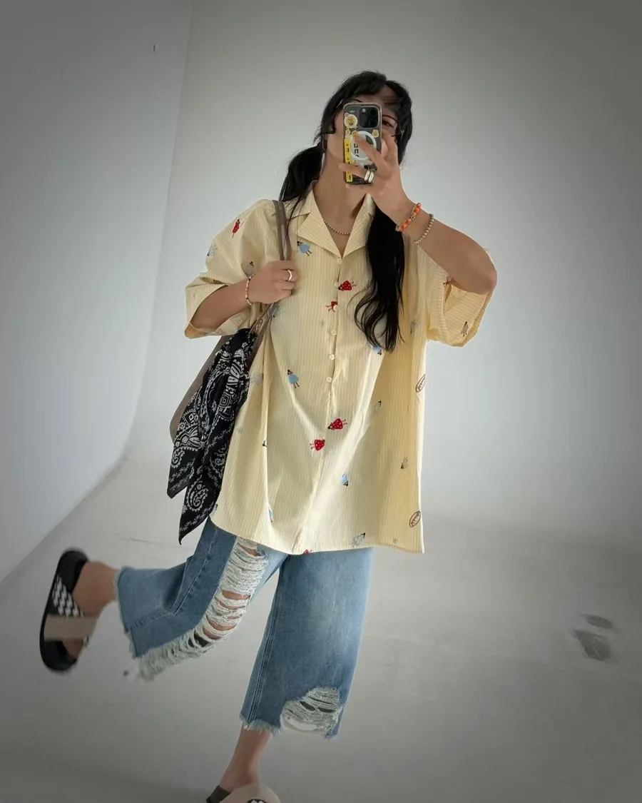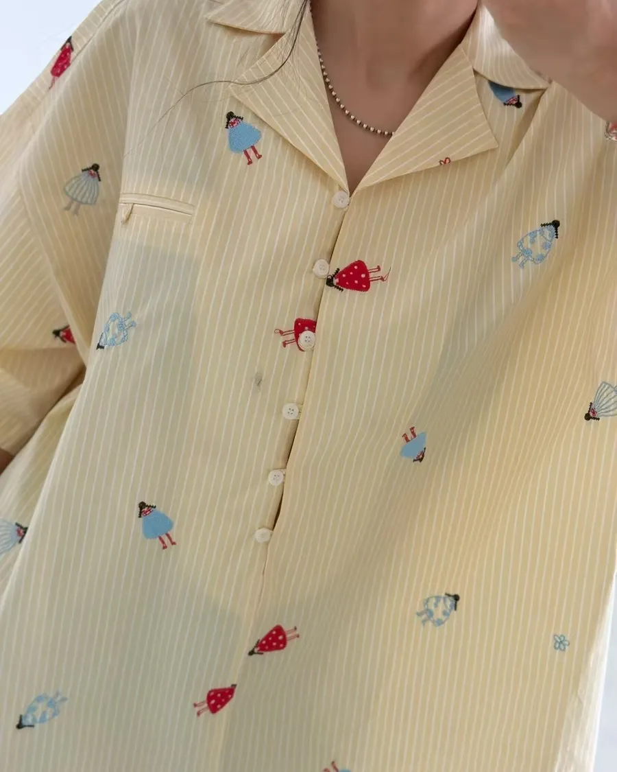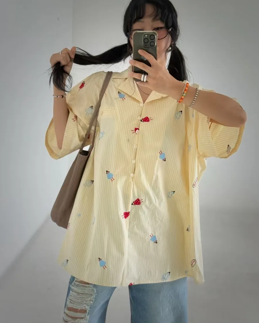 寬版刺繡圖襯衫