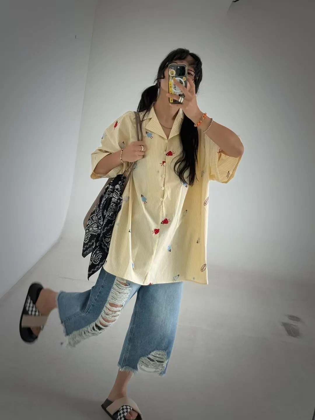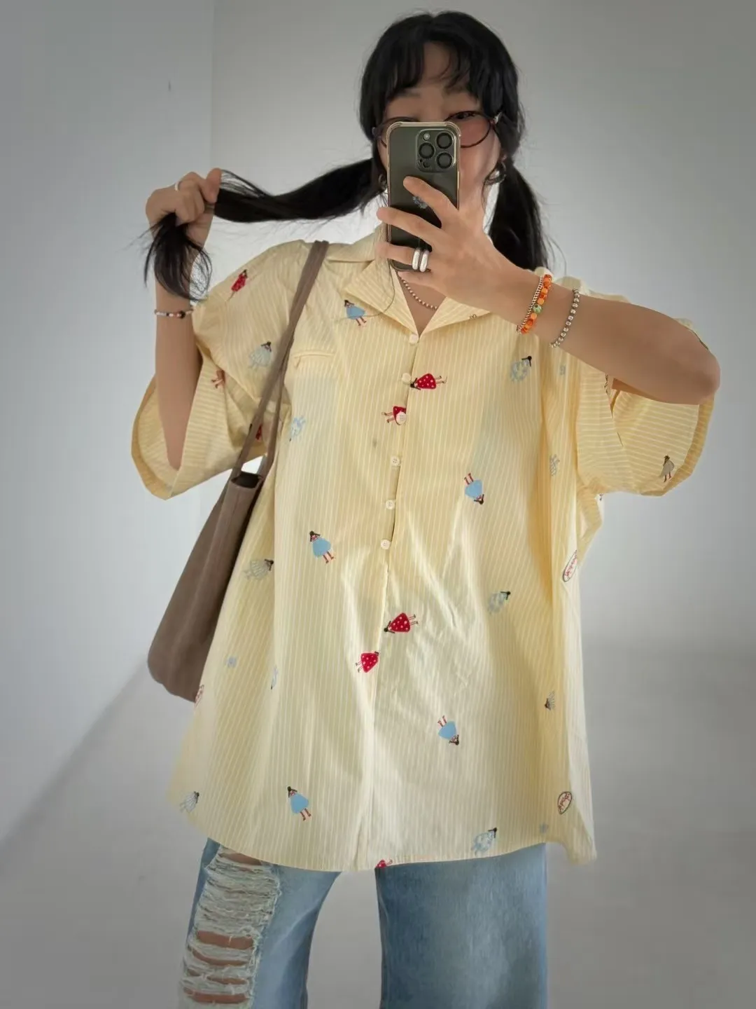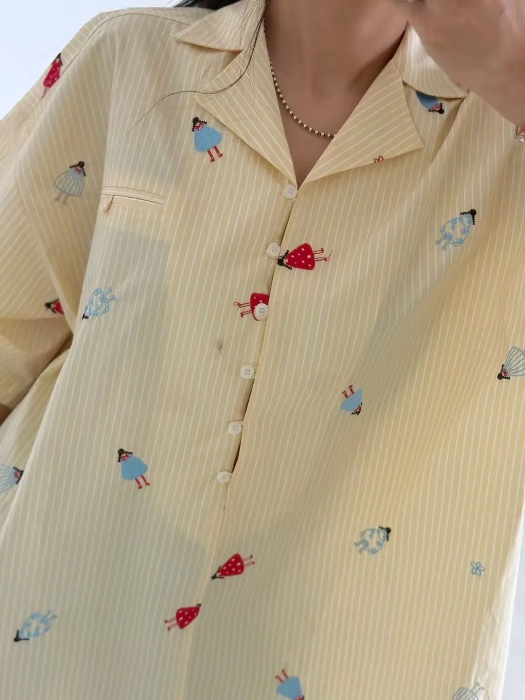 寬版刺繡圖襯衫